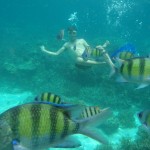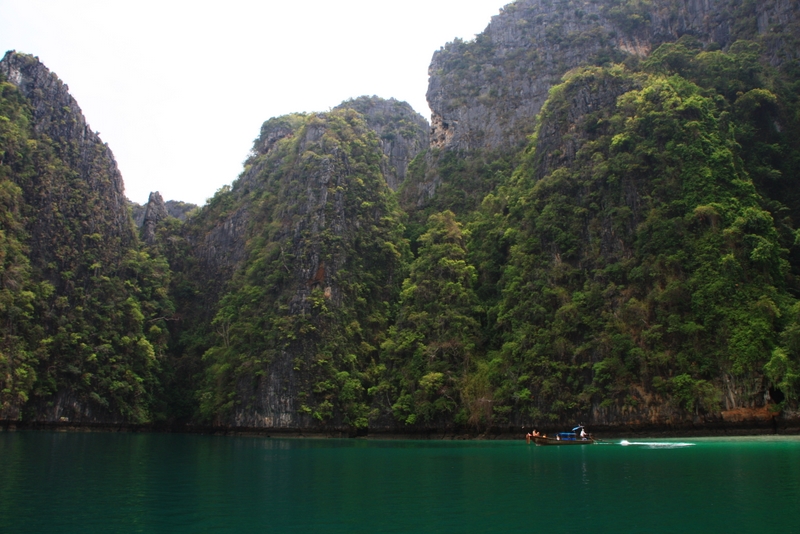 Nous avons continué vers Koh Phi Phi pour 4 jours. Une île magnifique avec de belles plages, une eau limpide, une faune et une flore marine très riches. Ce sont certainement les eaux les plus belles que nous ayons jamais vu. Avec de simples masques et tubas, nous avons pu observer de magnifiques murènes, des seiches, des hippocampes, des poissons clowns et une multitude de poissons multicolores  vivant sur les coraux. Ce dernier a d’ailleurs extrêmement souffert par endroit lors du tsunami de 2004, cette zone ayant été une des plus fortement touchées.