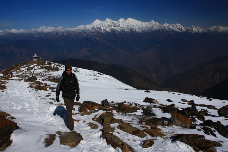 Cela fait 4 jours que nous sommes partis et nous faisons demi-tour pour repasser sous 2000m et repartir sur le trek de Gosainkund. Nous passons par de jolis villages comme Thulo Syabru où les gens cultivent en terrasses. Nous montons en 3 jours vers Gosaikund, site d’un grand pèlerinage hindou au mois d’août, durant lequel des milliers de sâdhus montent jusqu’aux lacs sacrés ; nous admirons ces trois lacs enneigés. Ce sera notre nuit la plus élevée, 4380m, il n’y a que 58% d’oxygène à cette altitude par rapport au niveau de la mer.