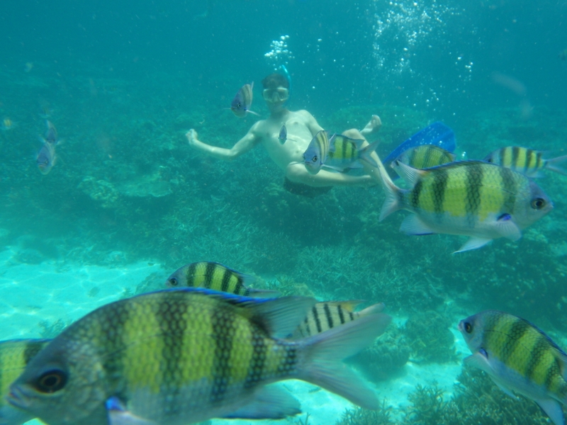 Nous avons continué vers Koh Phi Phi pour 4 jours. Une île magnifique avec de belles plages, une eau limpide, une faune et une flore marine très riches. Ce sont certainement les eaux les plus belles que nous ayons jamais vu. Avec de simples masques et tubas, nous avons pu observer de magnifiques murènes, des seiches, des hippocampes, des poissons clowns et une multitude de poissons multicolores  vivant sur les coraux. Ce dernier a d’ailleurs extrêmement souffert par endroit lors du tsunami de 2004, cette zone ayant été une des plus fortement touchées.