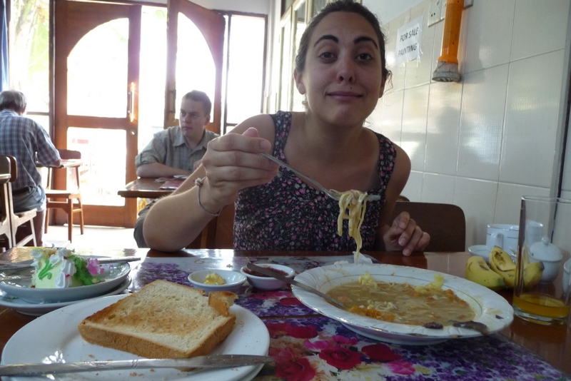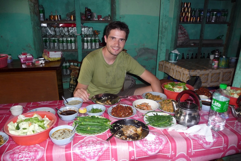 C’est difficile de bien manger en Birmanie, il y a peu de diversités gustatives. Nous avons essentiellement mangé des currys, des samossas et autres petites choses frites. On a parfois mangé chinois ce que d’ailleurs les birmans aiment aussi beaucoup : nouilles et riz sautés avec des légumes. Comme dans beaucoup de pays, il n’y a aucun dessert mis à part quelques fruits.
