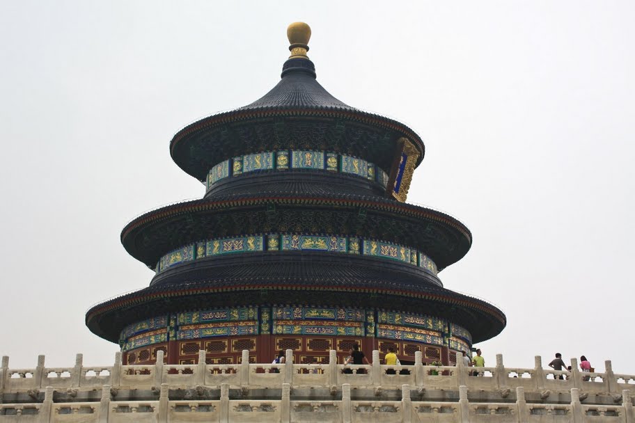 Nous commençons notre visite par une promenade à pied à l’ouest de la cité interdite où nous rencontrons 3 hommes avec des longs cerfs-volants, si long que nous les voyons à peine dans ce ciel pollué. Nous continuons par le parc Zhongshan, l’entrée ne coûte par très cher et ça fait du bien de se poser un peu à l’écart des grandes rues bondées de voiture. Enfin un passage par la place Tien’anmen pour voir le portrait de Mao et nous remontons par l’est de la cité interdite.
